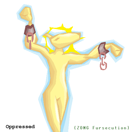 But...aren't I just being a self-absorbed, whiny prick if I do that?That's the idea. Remember, it's always fursecution. If your gay furry porn gets deleted from deviantART, it's because it's gay and furry. Not because it violates dA's rules on pornography, which you agreed to when joining; it's discrimination. Remember to make a thread in the wrong forum complaining about it, and wank so hardpun intendedthat you get banned. Then sniffle about it on your LJ.